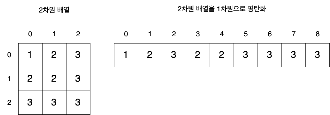 위의 그림에서 2차원 배열을 a, 평탄화된 배열을 b라고 지칭하도록 하겠다.