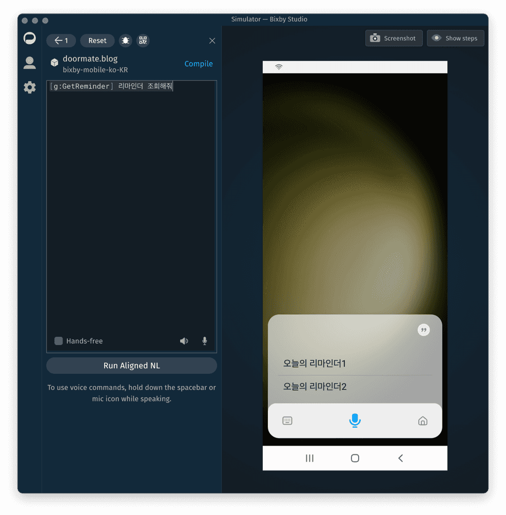 현재 내가 졸업작품에서 만들어야 할 것은 음성 명령으로 리마인더 조회와 등록을 하는 빅스비 캡슐이다.