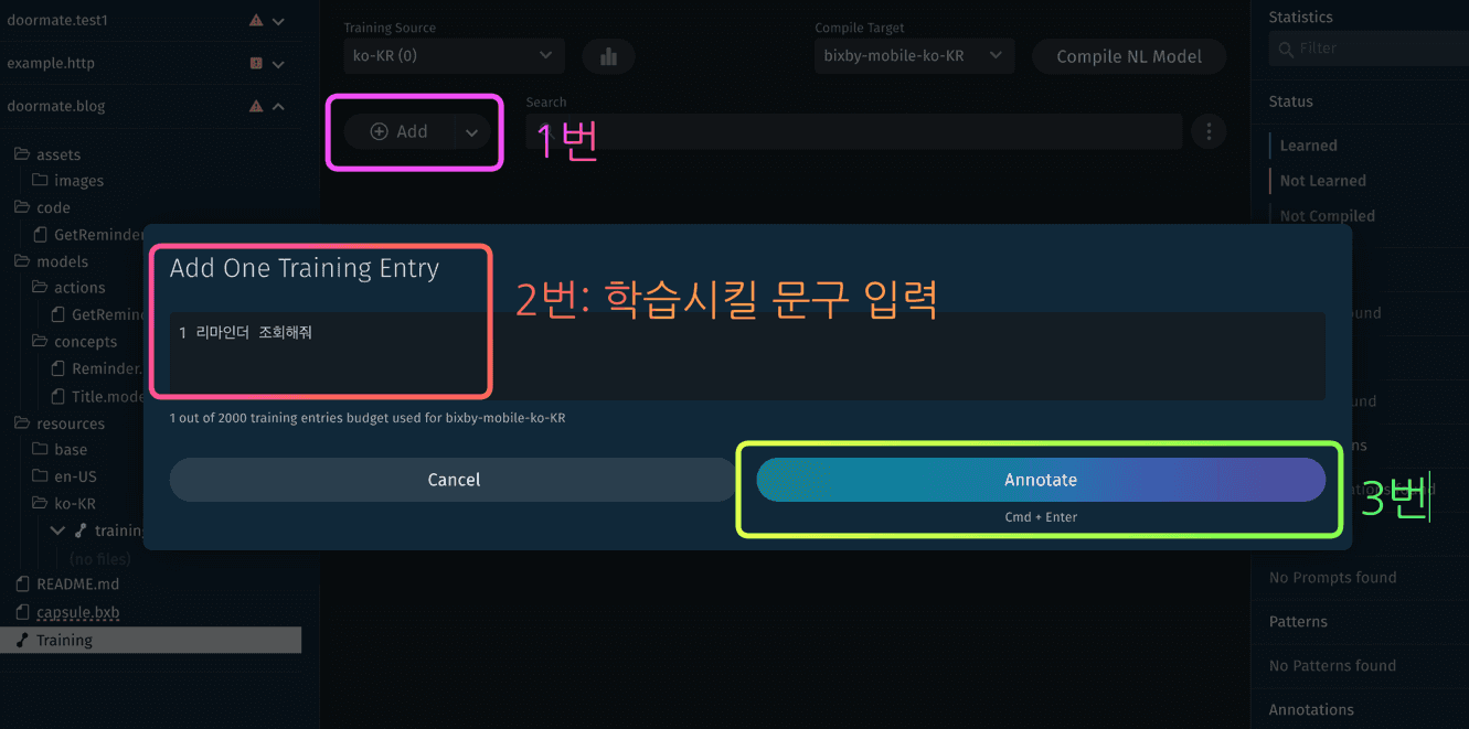 }3. 이제 빅스비를 학습시킬 차례!