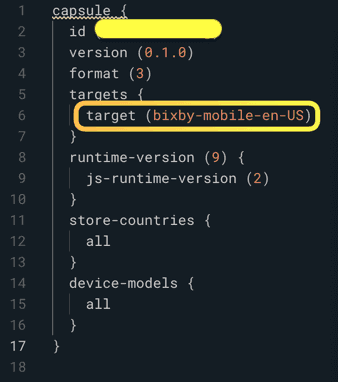 capsule.bxb라는 파일을 보면 target (bixby-mobile-en-US) 이라는 부분이 있다.