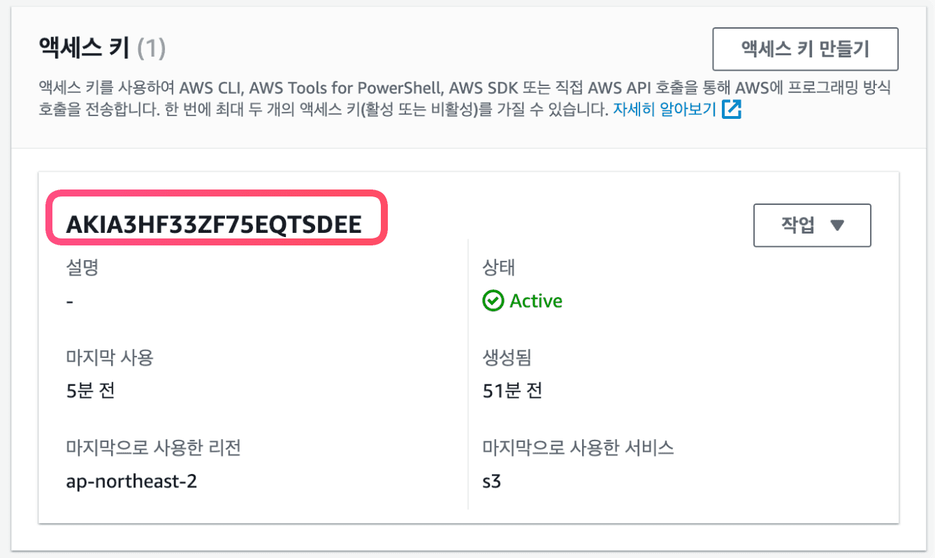 AWS_ACCESS_KEY_ID: 위에서 생성한 IAM 사용자의 엑세스 키 ID