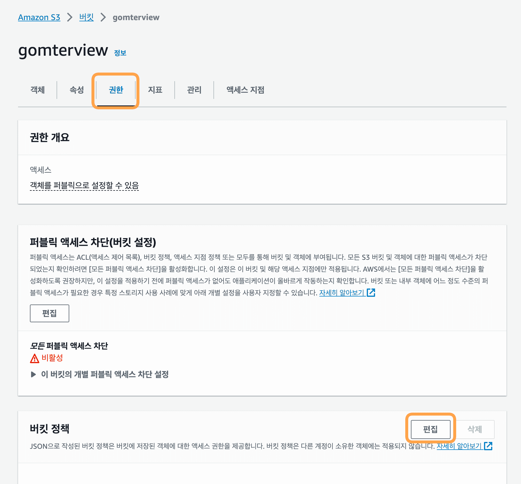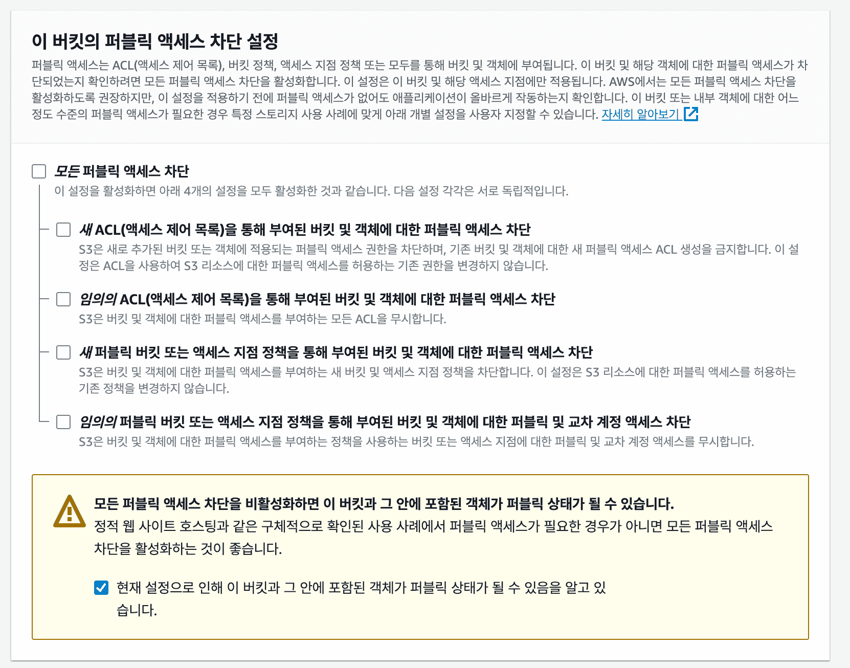 퍼블릭 액세스 차단은 체크박스 해제를 해줍시다.