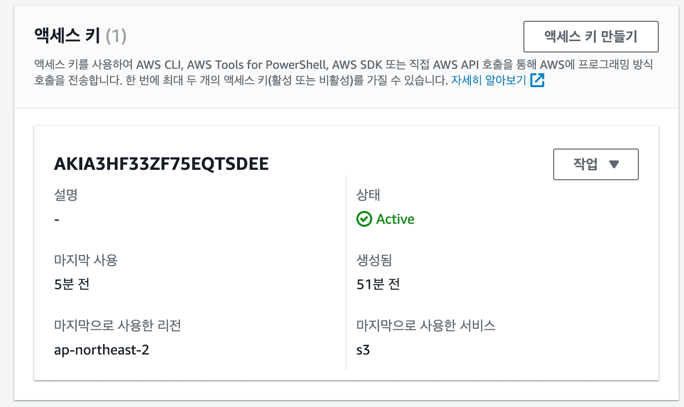 AWS_SECRET_ACCESS_KEY: IAM 사용자의 엑세스 키를 처음 발급받을 때 받았던 시크릿 키AWS_S3_BUCKET: S3 버킷의 이름