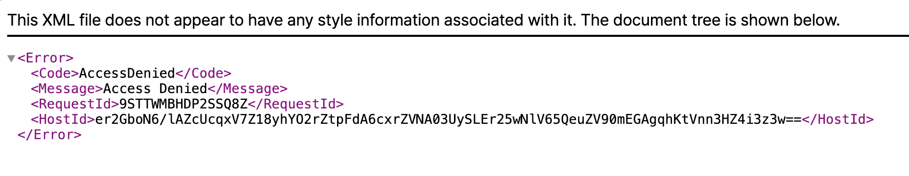 다른 하위 경로로 접속해보면 403 에러가 발생하게 됩니다. 왜냐하면 S3 버킷에서 퍼블릭 접근은 index.html만 허용되어 있기 때문이죠.